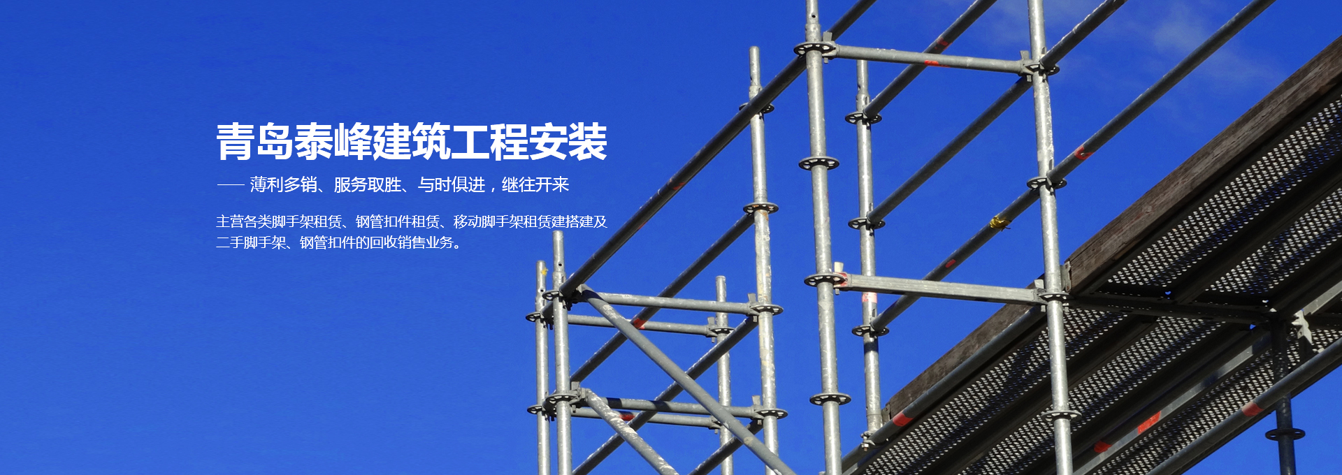 青島泰峰建筑工程安裝有限公司主營各類腳手架租賃、鋼管扣件租賃、移動(dòng)腳手架租賃建搭建及二手腳手架、鋼管扣件的回收銷售業(yè)務(wù)。公司實(shí)力雄厚,擁有鋼管約3000噸、扣件70萬只、鋼笆7萬多片塔吊、人貨電梯多臺(tái);總資產(chǎn)達(dá)到1000多萬元。是一家具有腳手架搭建、水電安裝專業(yè)承包施工資質(zhì)的企業(yè),并成為青島市五金協(xié)會(huì)的會(huì)員單位。且多次參與高層建筑、建筑裝修、玻璃幕墻、橋梁、隧道、地鐵、電廠維修施工、造船等行業(yè)的施工,并獲得施工單位的一致好評(píng)。 人無信不立,有信則強(qiáng)公司以“薄利多銷、服務(wù)取勝”為經(jīng)營宗旨...